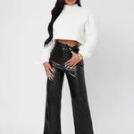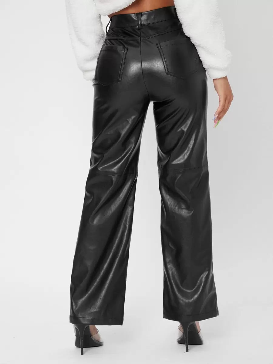 Elevate your evening attire with these Solid High Waist Straight Leg PU Leather Going Out Pants, expertly designed for a sleek and confident look. The high waist enhances your silhouette while providing comfort and support, creating a polished and flattering fit. Crafted from premium PU leather, these pants offer a glossy finish that stands out in any social setting. The straight leg cut balances modern style with timeless appeal, making them versatile for pairing with blouses, jackets, or statement accessories. Perfect for nights out or special occasions, these pants combine edge and sophistication for a standout ensemble.