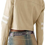 Women’s Faux Leather Jackets Zip Up Stand Collar Cropped Motocross PU Coats 7