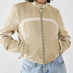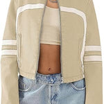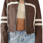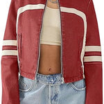 Women’s Faux Leather Jackets Zip Up Stand Collar Cropped Motocross PU Coats